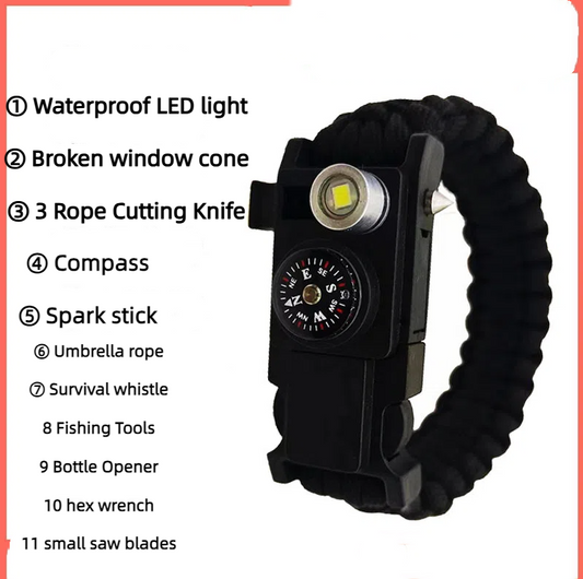 Umbrella rope bracelet, outdoor life-saving supplies, multifunctional small knife, broken window bracelet, LED light, outdoor